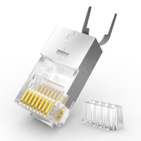 秋叶原 六类水晶头屏蔽型RJ45千兆网线纯铜镀金接头QS6666Z50
