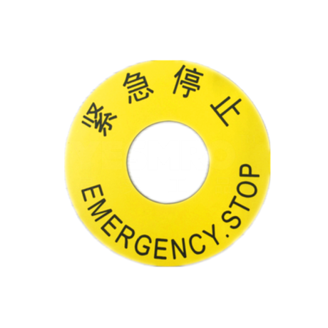 22mm按钮指示标识牌急停双色板黄底黑字中英文