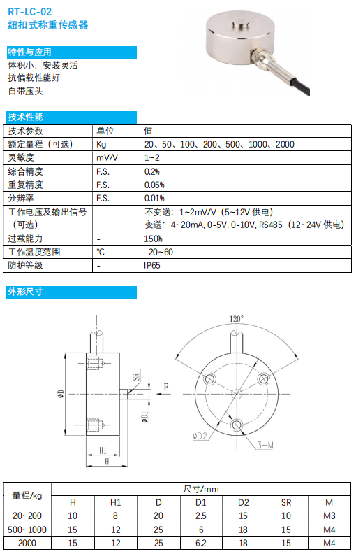 RT-LC-02 纽扣式称重传感器