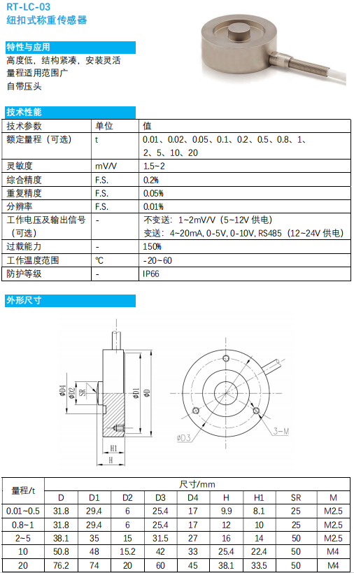 RT-LC-03 纽扣式称重传感器