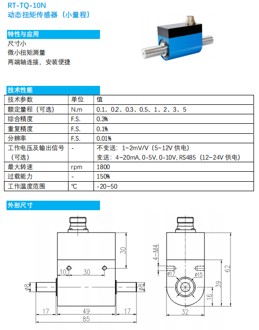 RT-TQ-10N动态扭矩传感器(小量程)