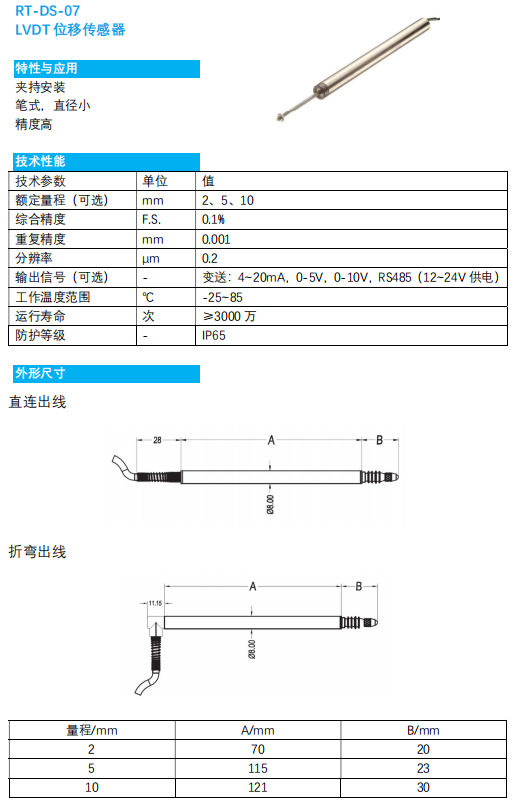 RT-DS-07 LVDT 位移传感器